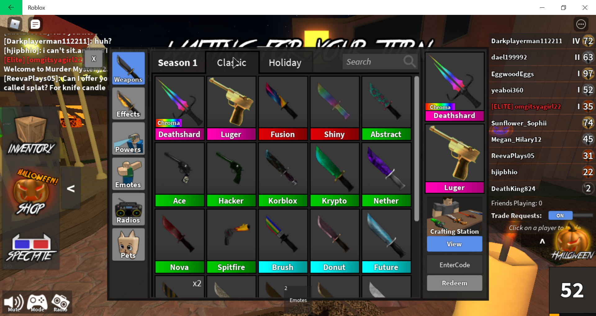Trade Murdermystery2 from i.redd.it All unique weapons other than corrupt are only obtainable by achieving a place on an event leaderboard and are untradeable, making them very rare to find and godly weapons are obtained by unboxing, crafting, game passes, events, trading, or buying merch. Murder mystery 2's official value list. Hey guys i will be giving away free godly and free chroma in mm2! This is a list of values for all tradable mm2 items. Бонблейд даркбрингер десшард фанг гемстоун джинджерблейд хит лазер лайтбрингер люгер сав сир шарк слешер тайдс. Mm2 scammer scams me out of chroma luger and takes my corrupt! It was originally the rarest knife in the game before the duping glitch of 2017. Mm2 value list are an easy and free way to trade items in mm2 value.